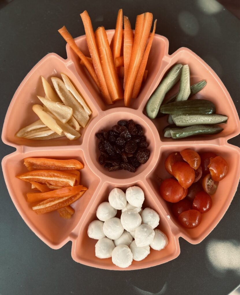 14:30: We gaan aan tafel voor het groente- en drinkmoment.